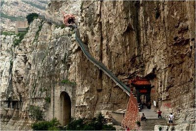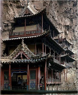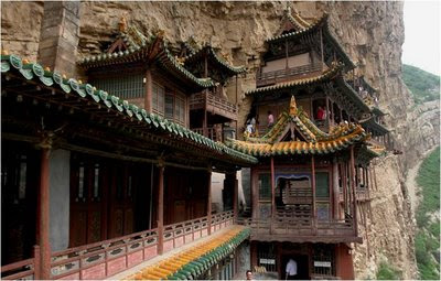 Este monasterio fue construido sobre la ladera vertical del cañón Jinlong, cerca del Monte Heng, en la provincia de Shanxi, a 65 kilómetros al noroeste de Datong. China.